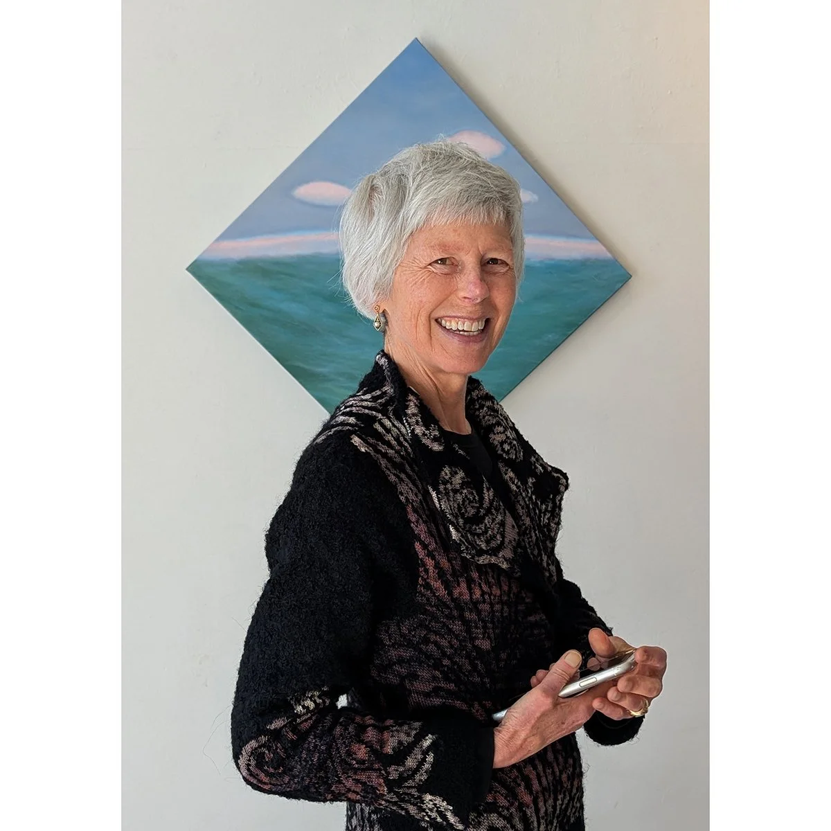 Natalie Craig with her active ocean painting,