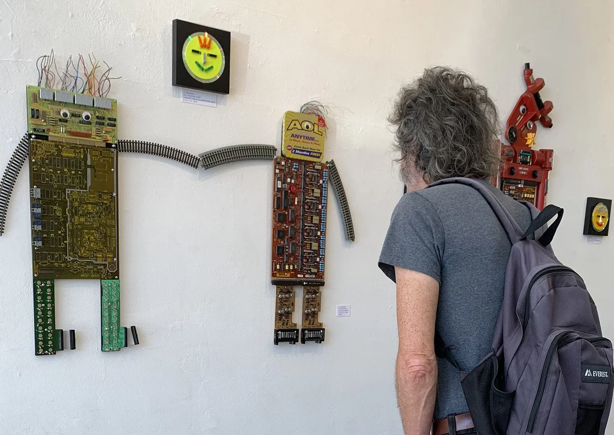 Kevin Webster studying Liz’s ArtBots