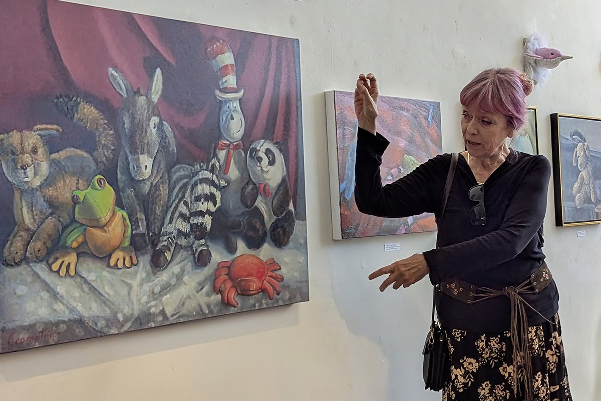 A gathering of Artists starting left: Deborah Corsini, Kevin Webster, Mel (Liz’s husband), Louise Jarmilowicz, Liz Mamorsky, Susan Tuttle