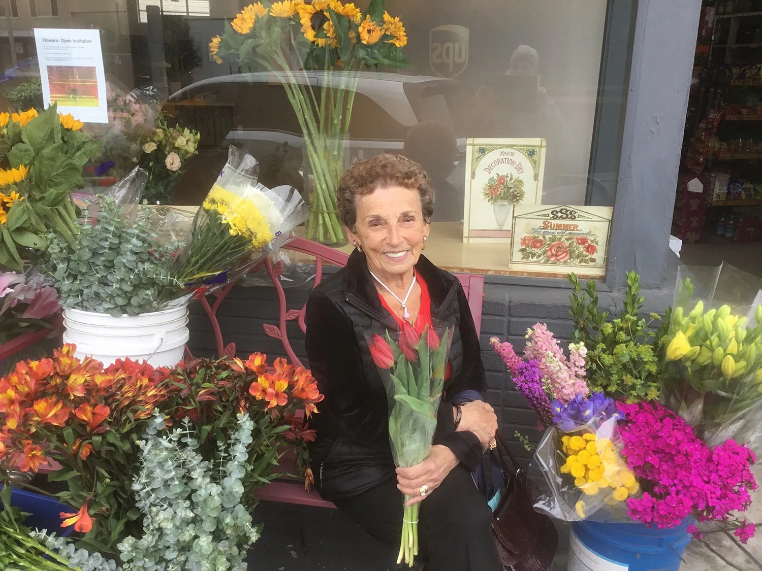 A strawberry cream Flower Cake from our neighbors, Sweet Passion Bakery.